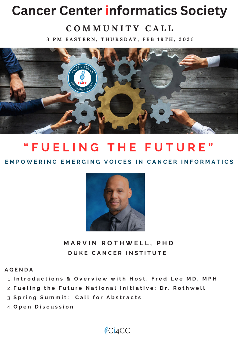 Your active participation is key to making each call a vibrant hub of innovation and collaboration within the Cancer Center Informatics Society community. Submit your own interest and proposal below.
